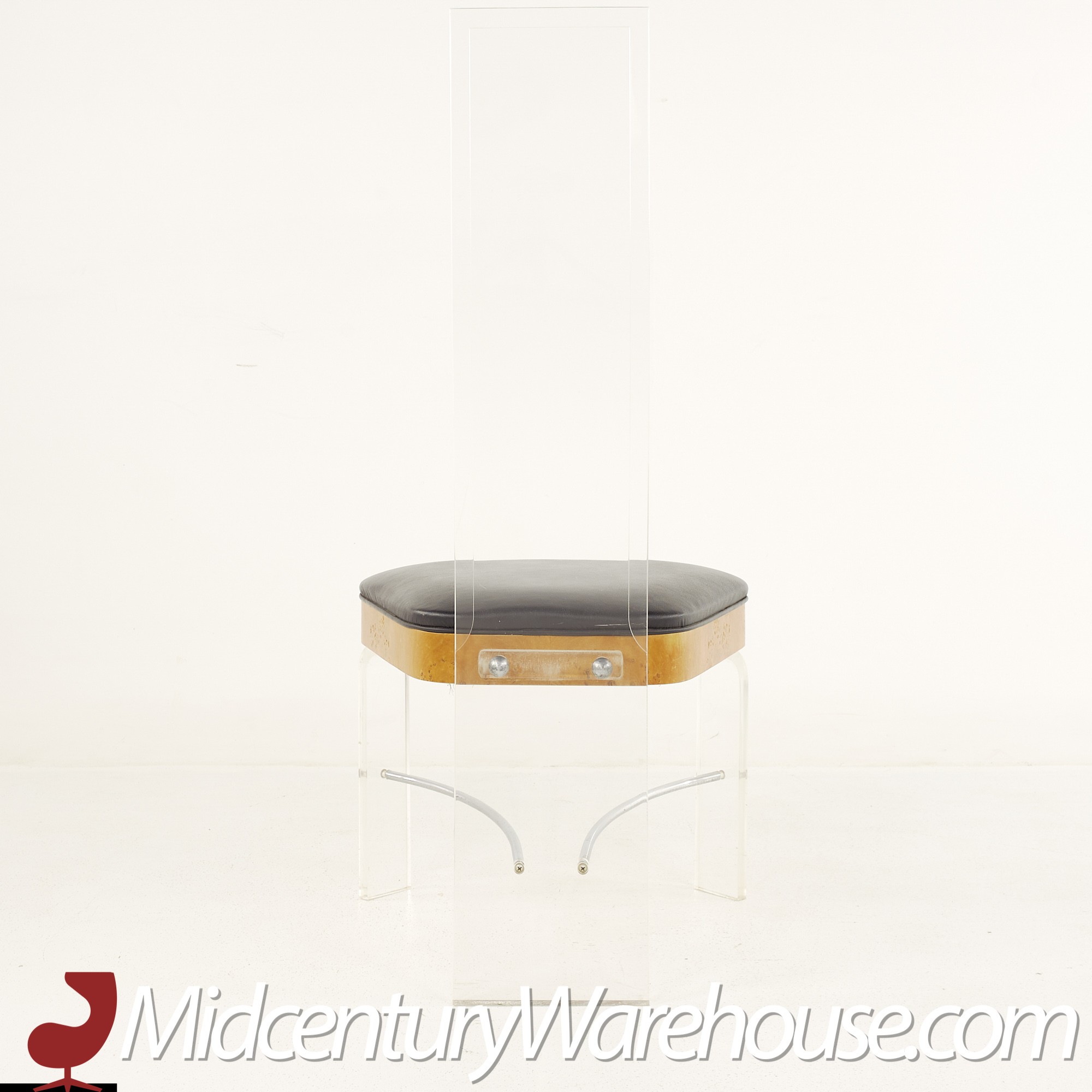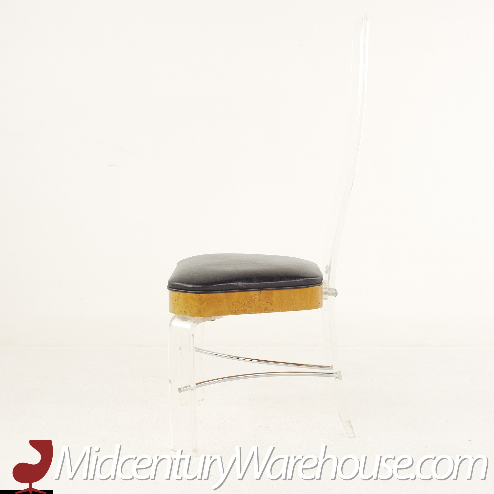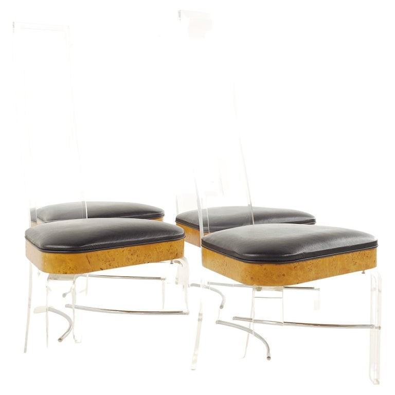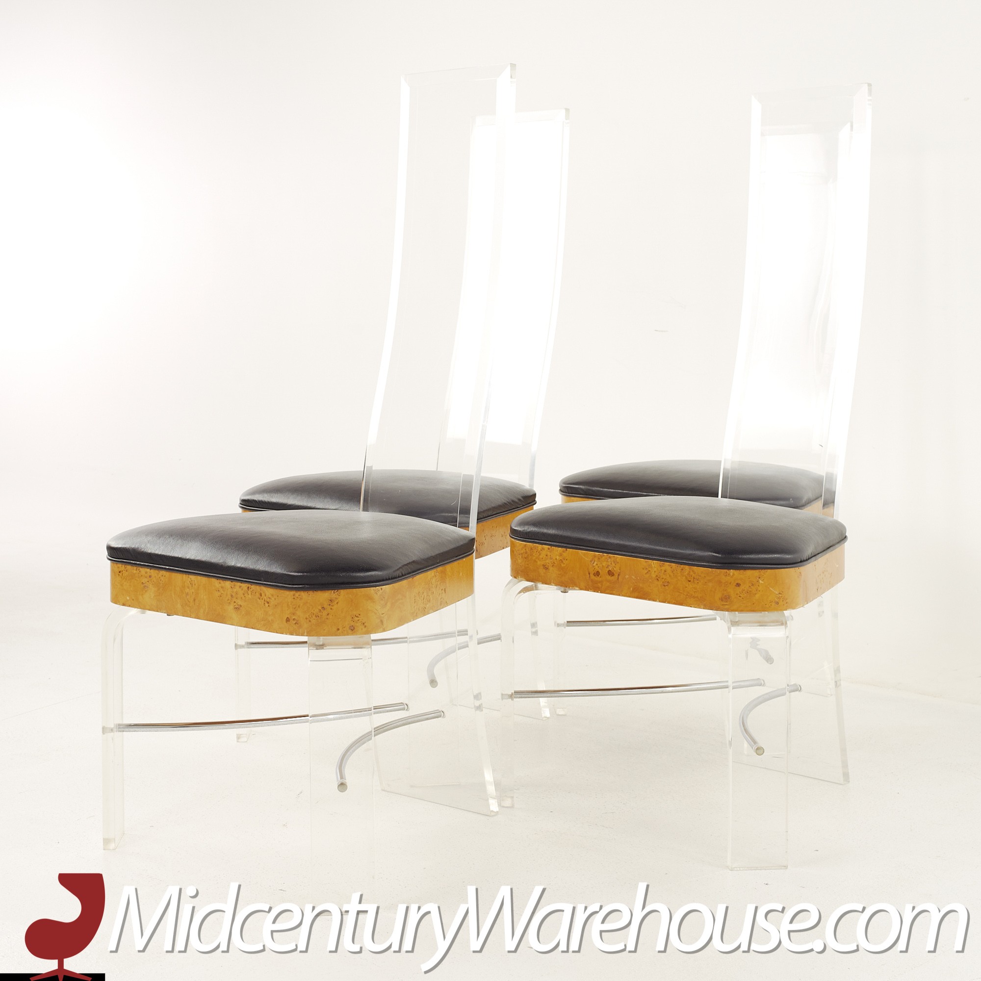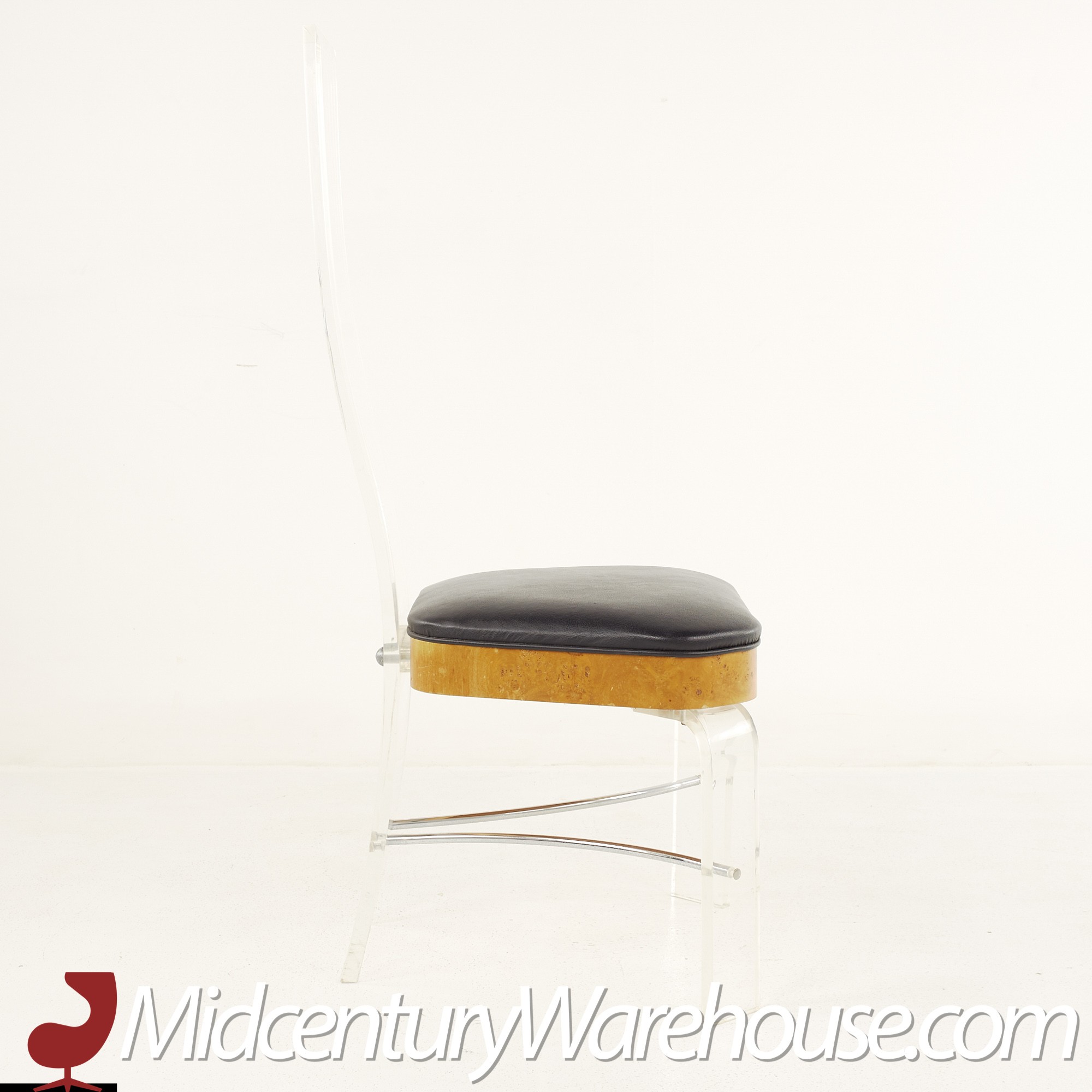 Vladimir Kagan Style Mid Century Burlwood and Lucite Dining Chairs - Set of 4
