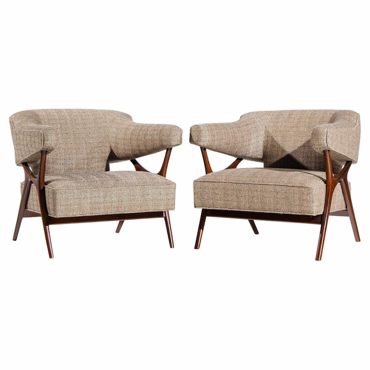 Ward Bennett Mid Century Sculptural Walnut Lounge Chairs - Pair