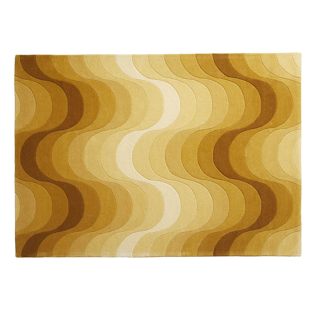 The Wave rug features a wave pattern with gradients of grey, orange or yellow.