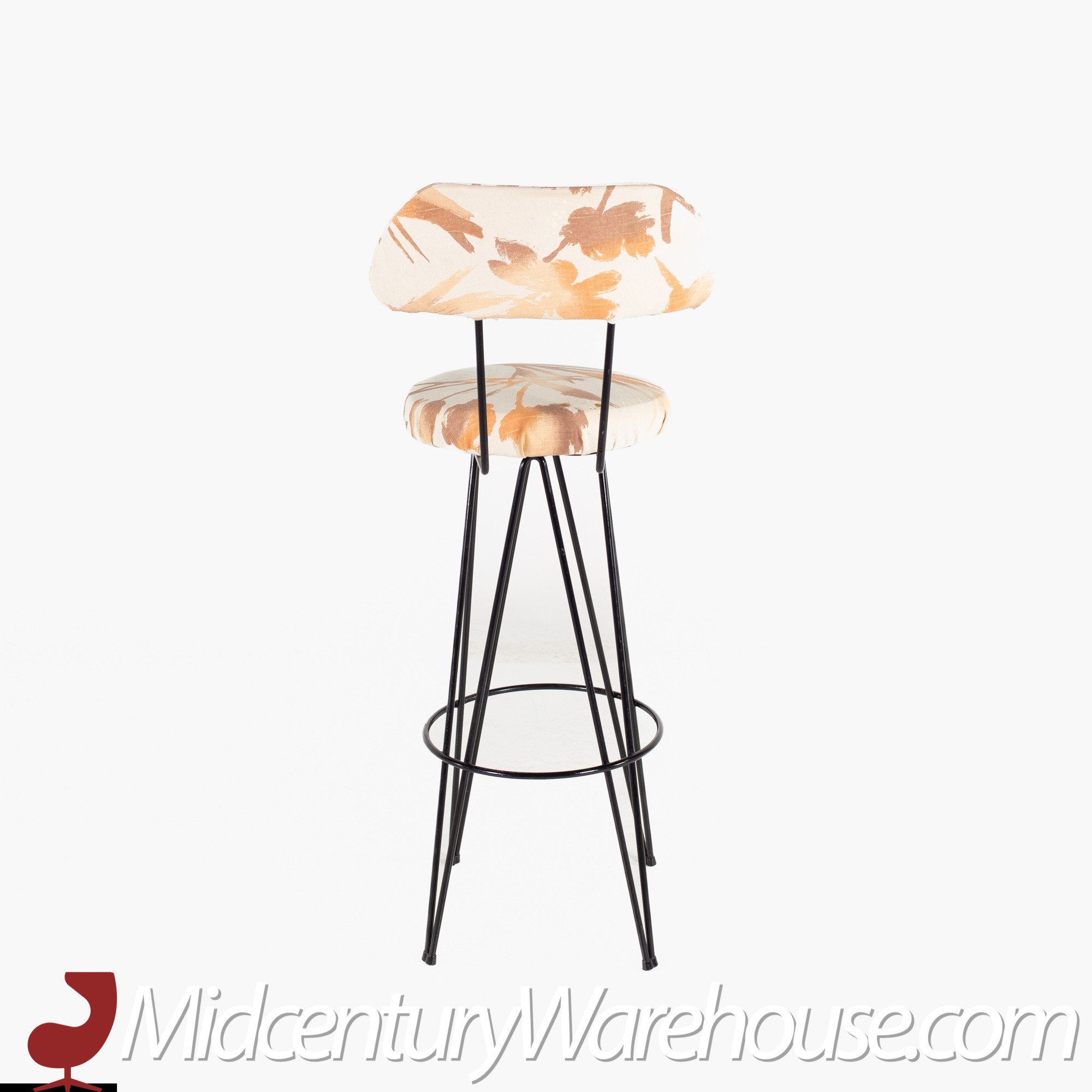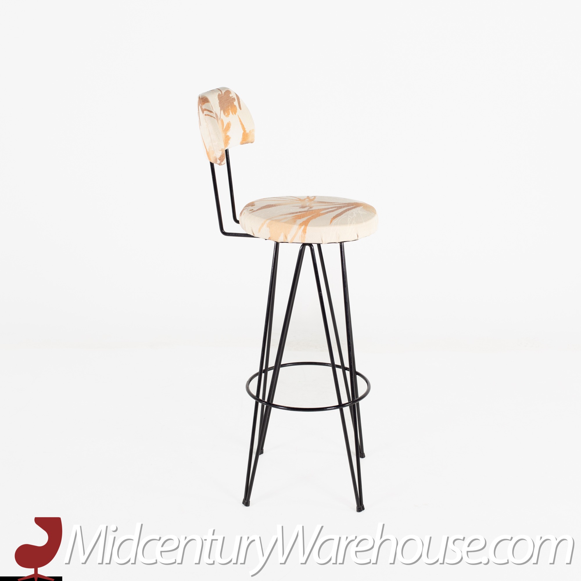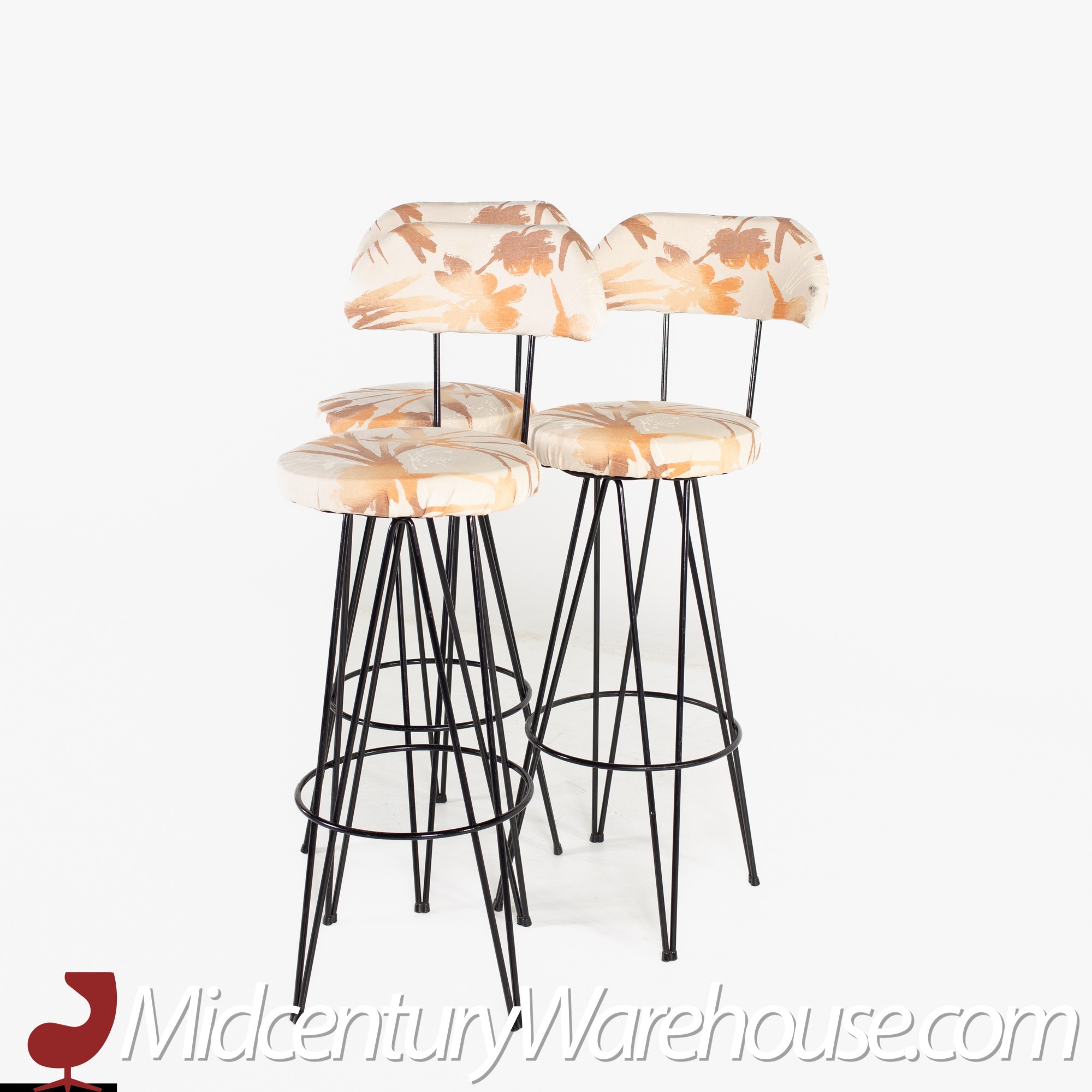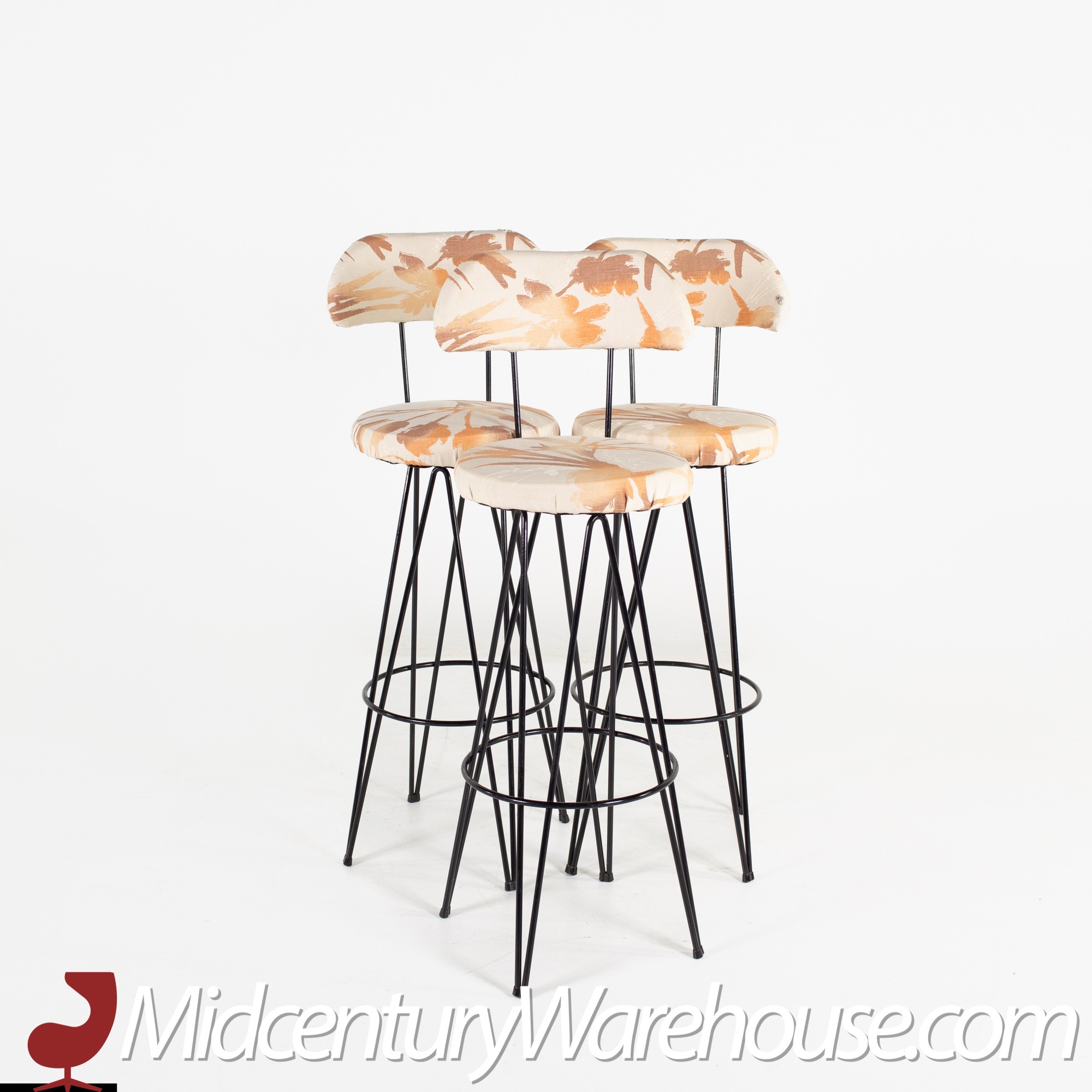 Weinberg Style Mid Century Iron Upholstered Bar Stools- Set of 3