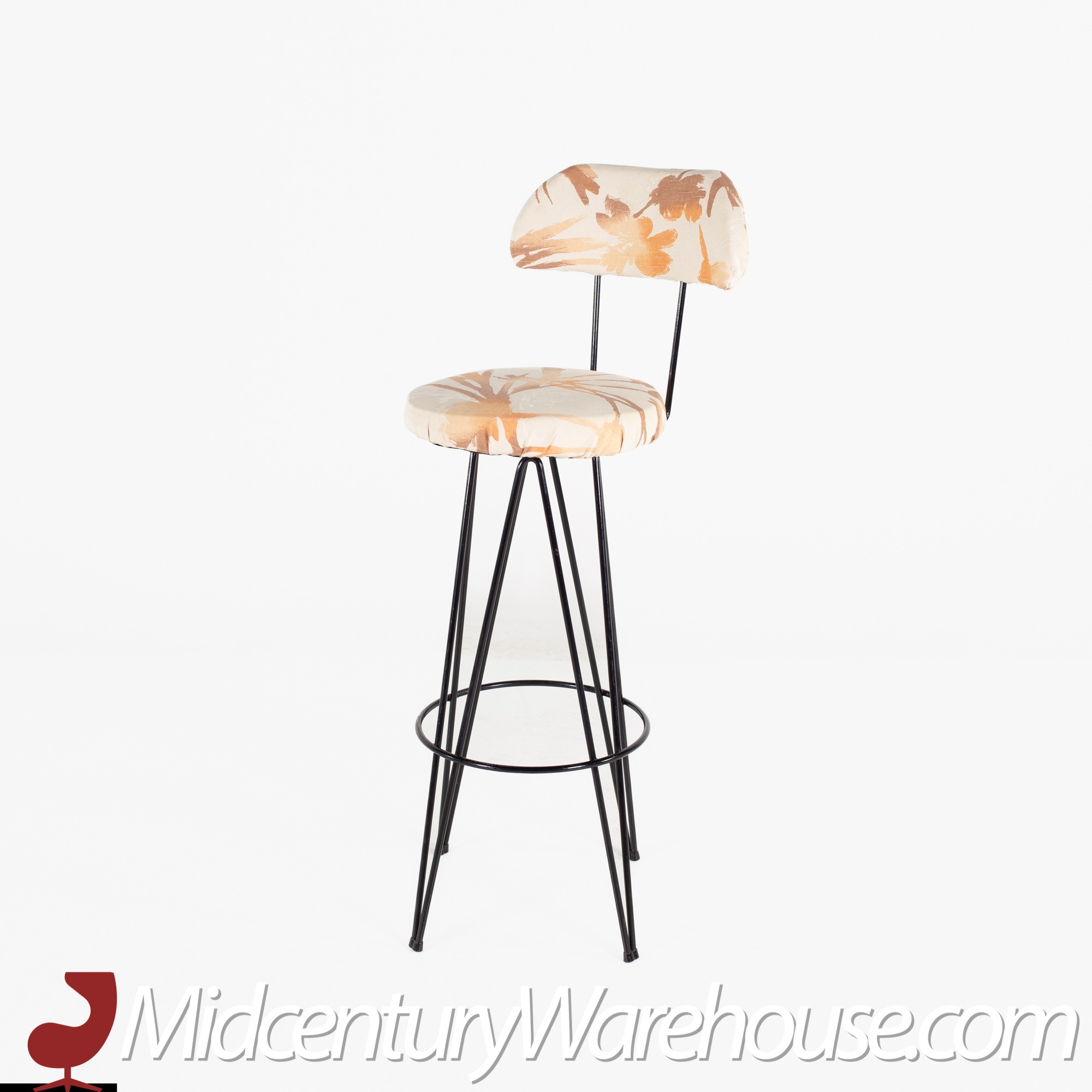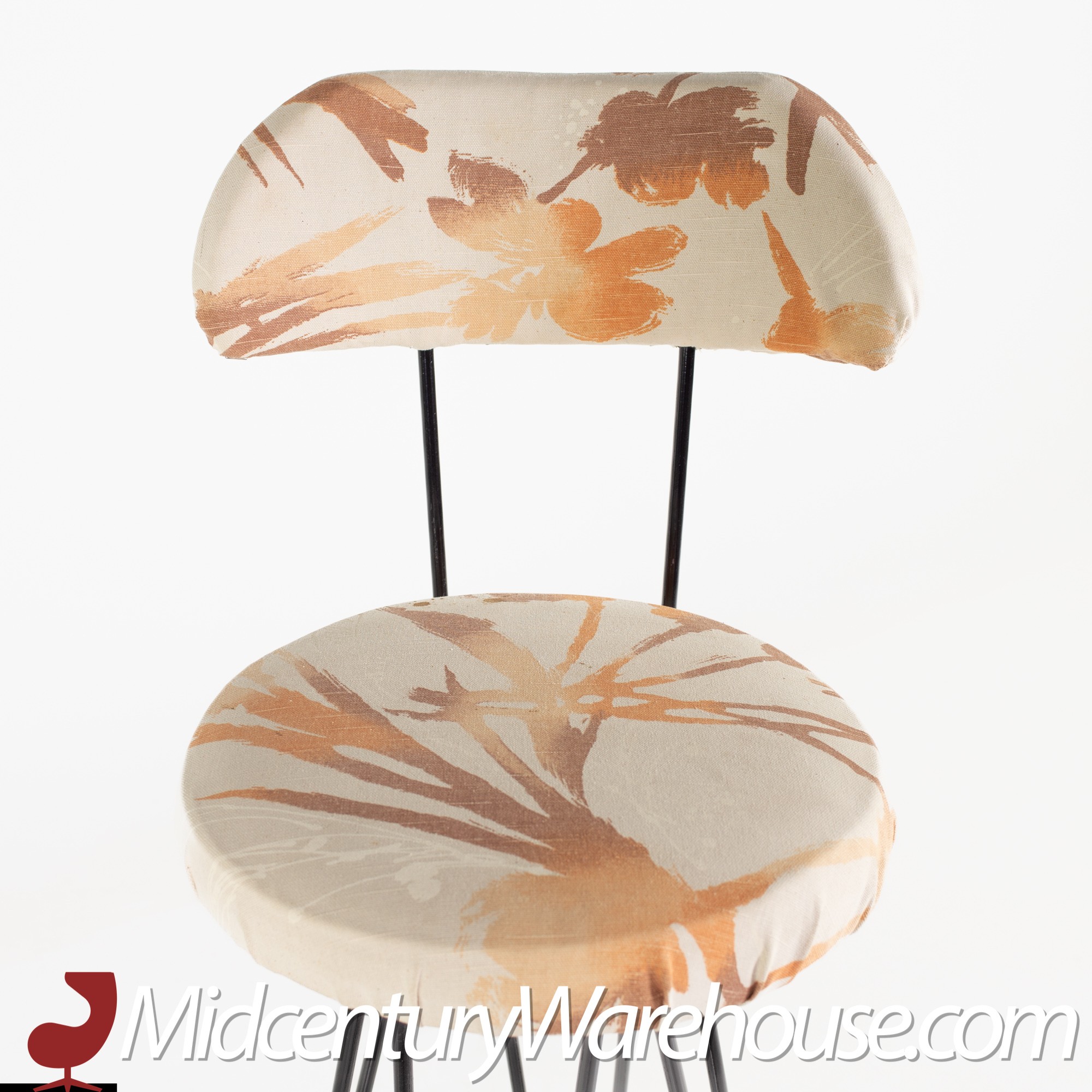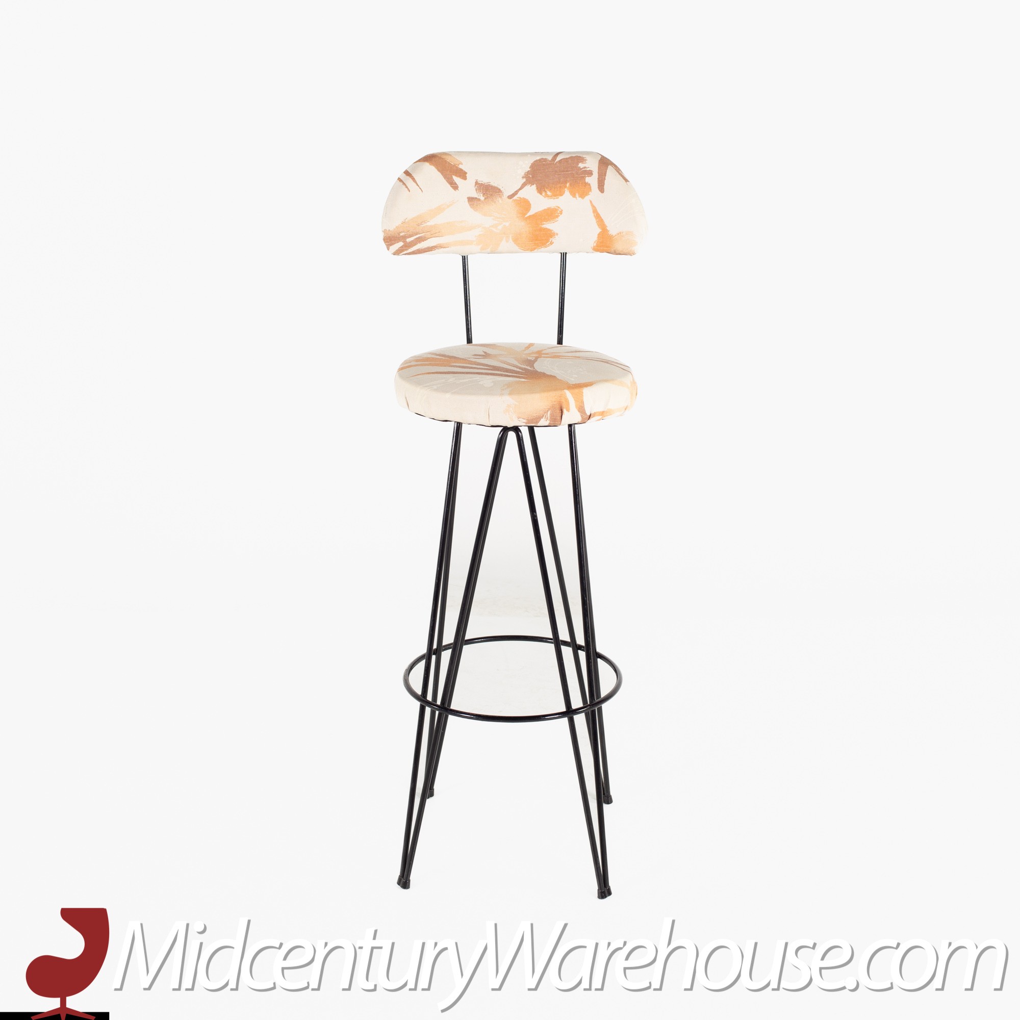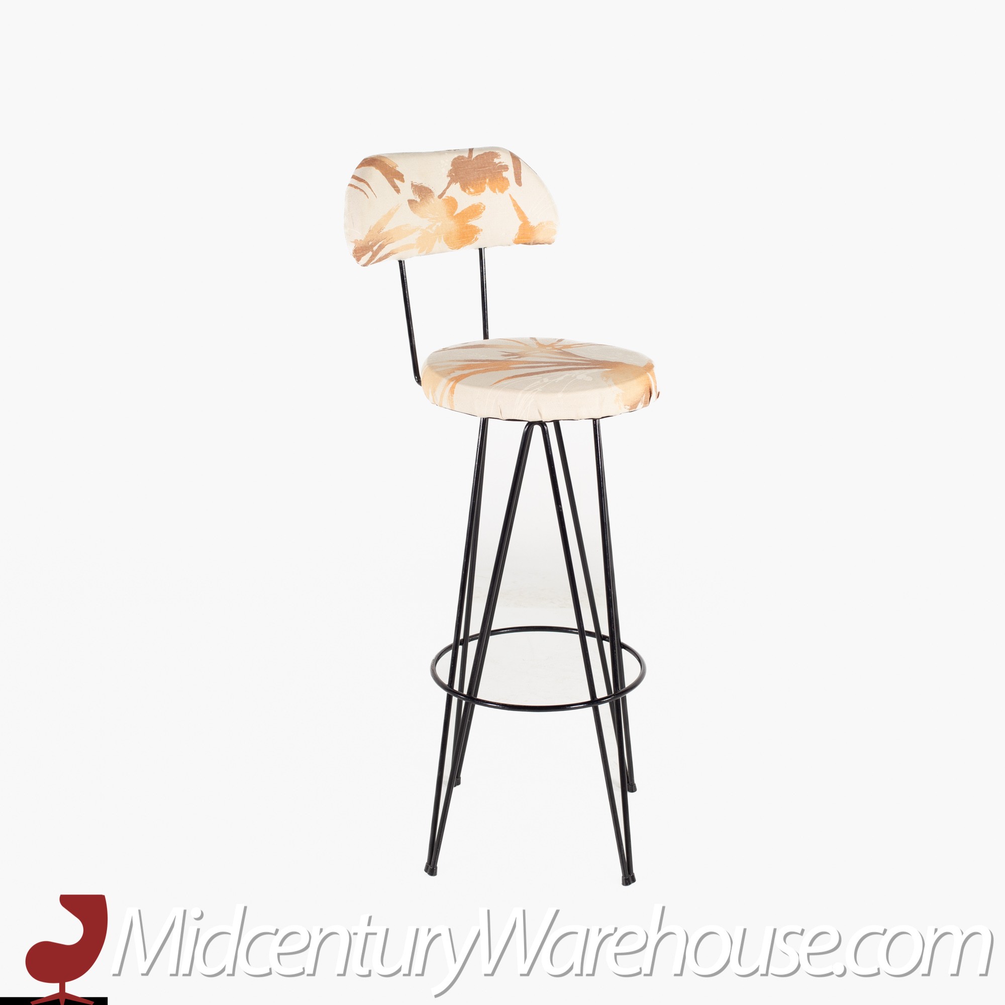 Weinberg Style Mid Century Iron Upholstered Bar Stools- Set of 3