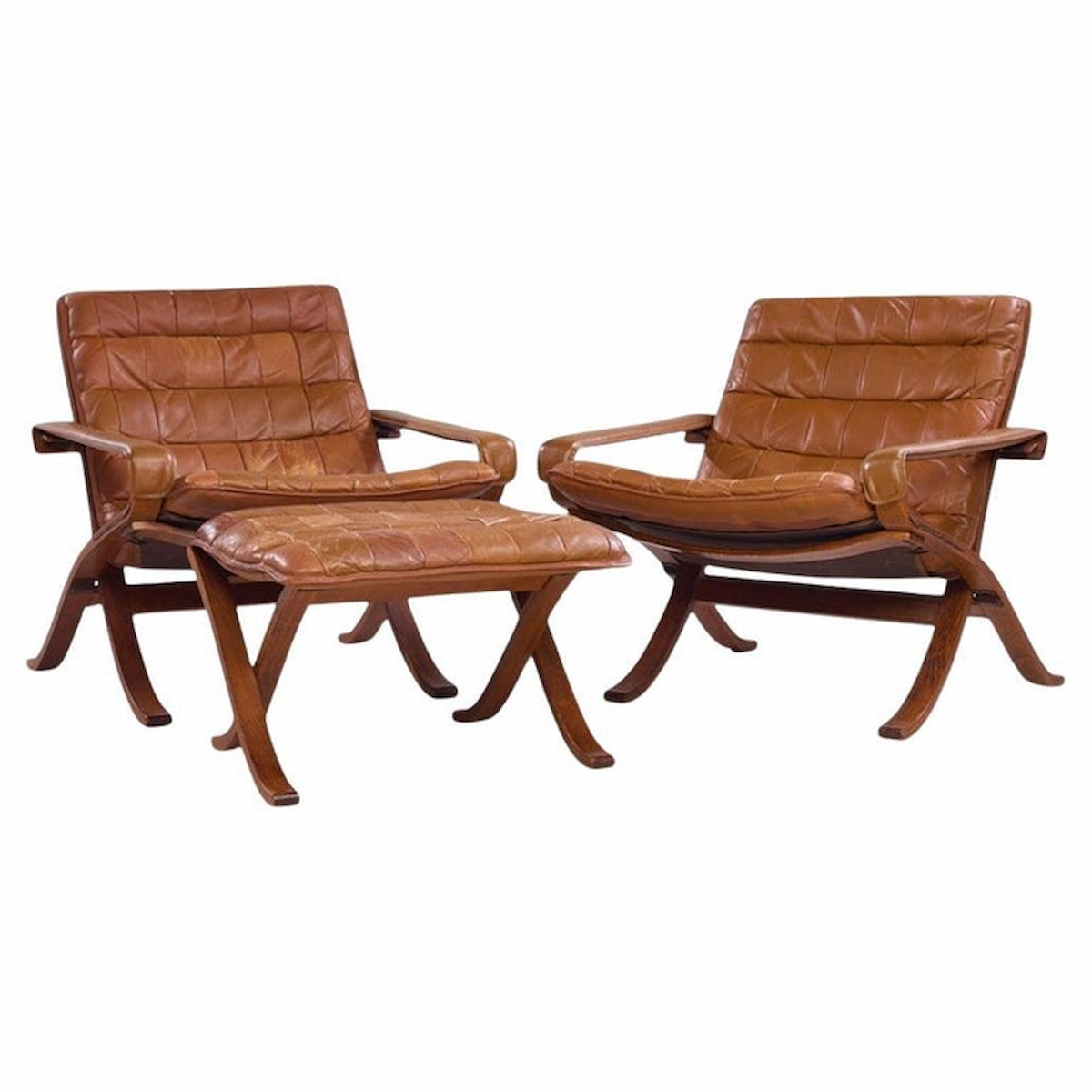 Westnofa Mid Century Norwegian Bentwood and Leather Lounge Chairs - Pair