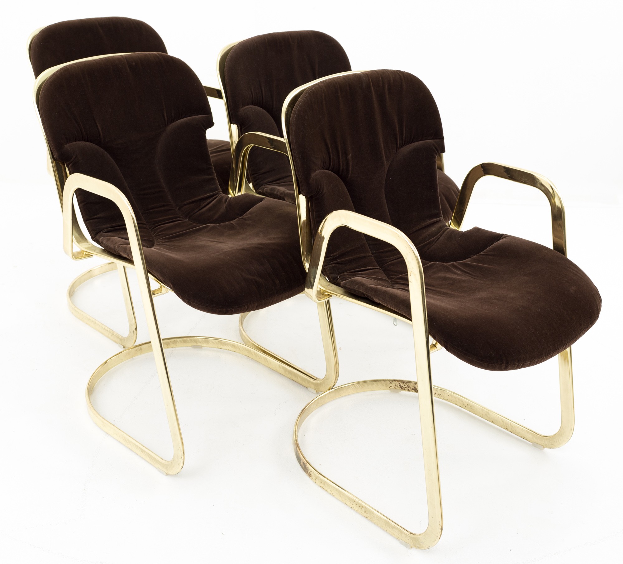 Willy Rizzo for Cidue Mid Century Italian Brass Cantilever Chair - Set of 4